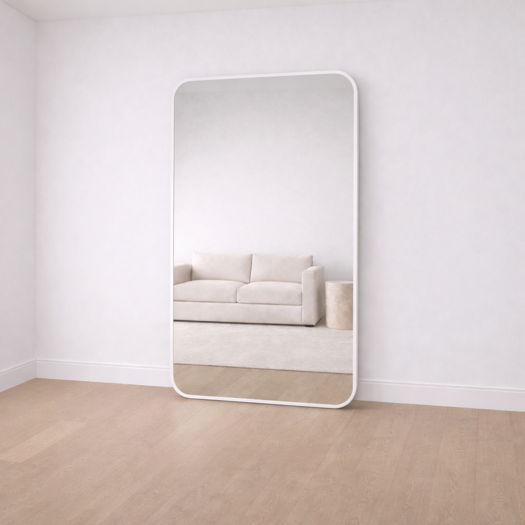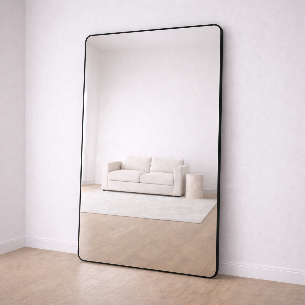 A contemporary rectangular mirror designed for modern interiors where proportion, restraint, and material quality matter.