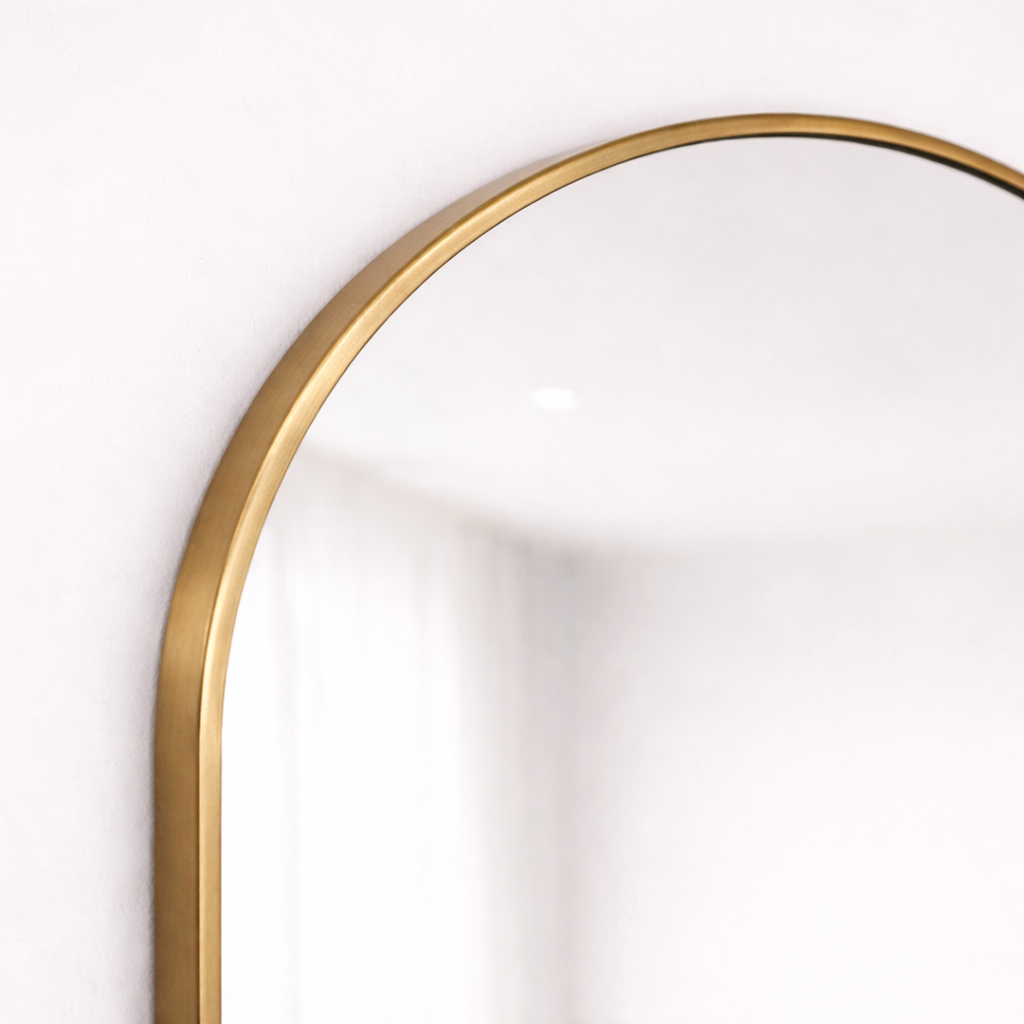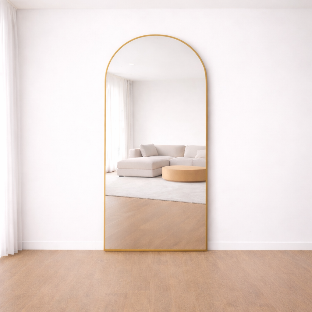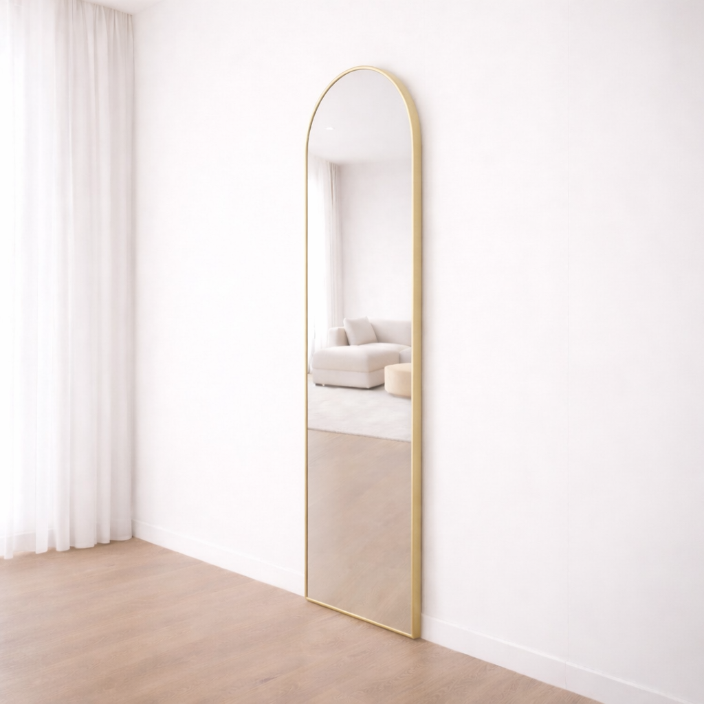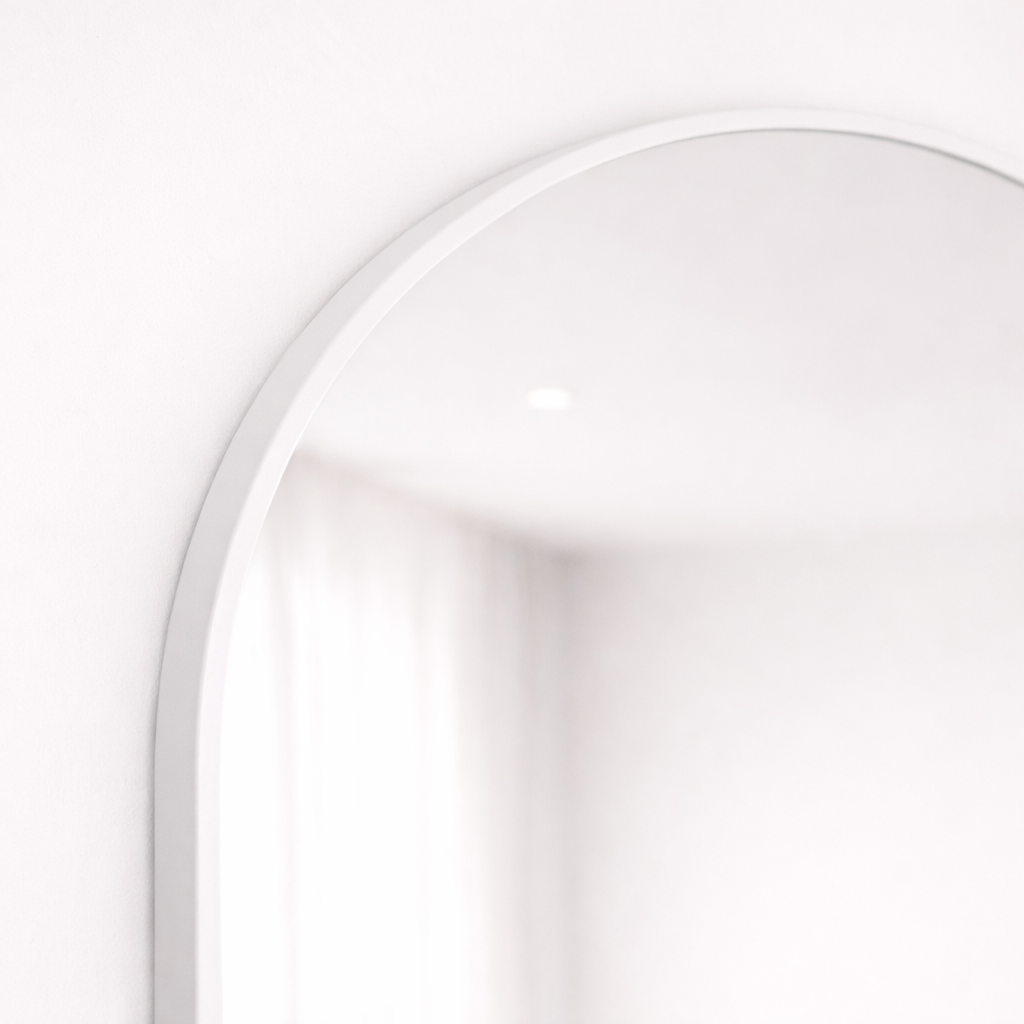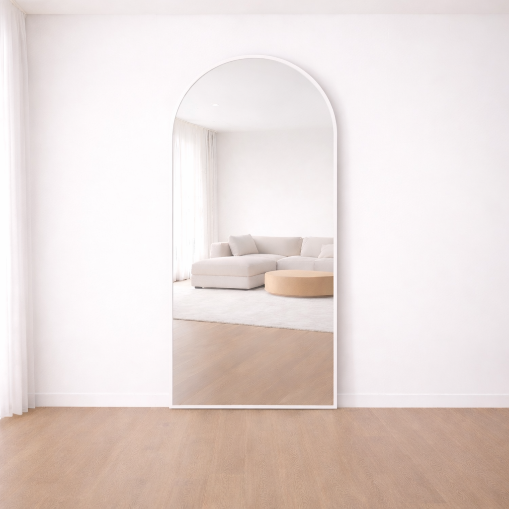 A modern arched mirror designed for interiors where softness, balance, and material quality take priority.
